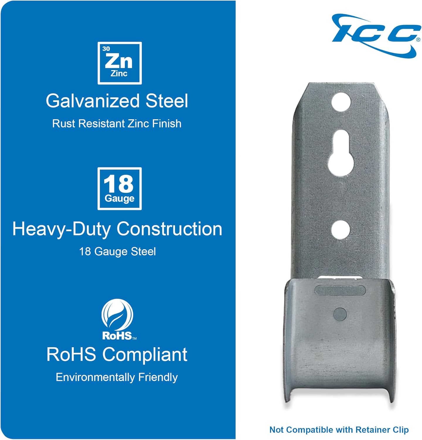 - Built to Last: Made from 18-gauge galvanized steel and finished with a rust-resistant zinc coating, ICC Wall Mount J-Hooks offering reliable support for cables