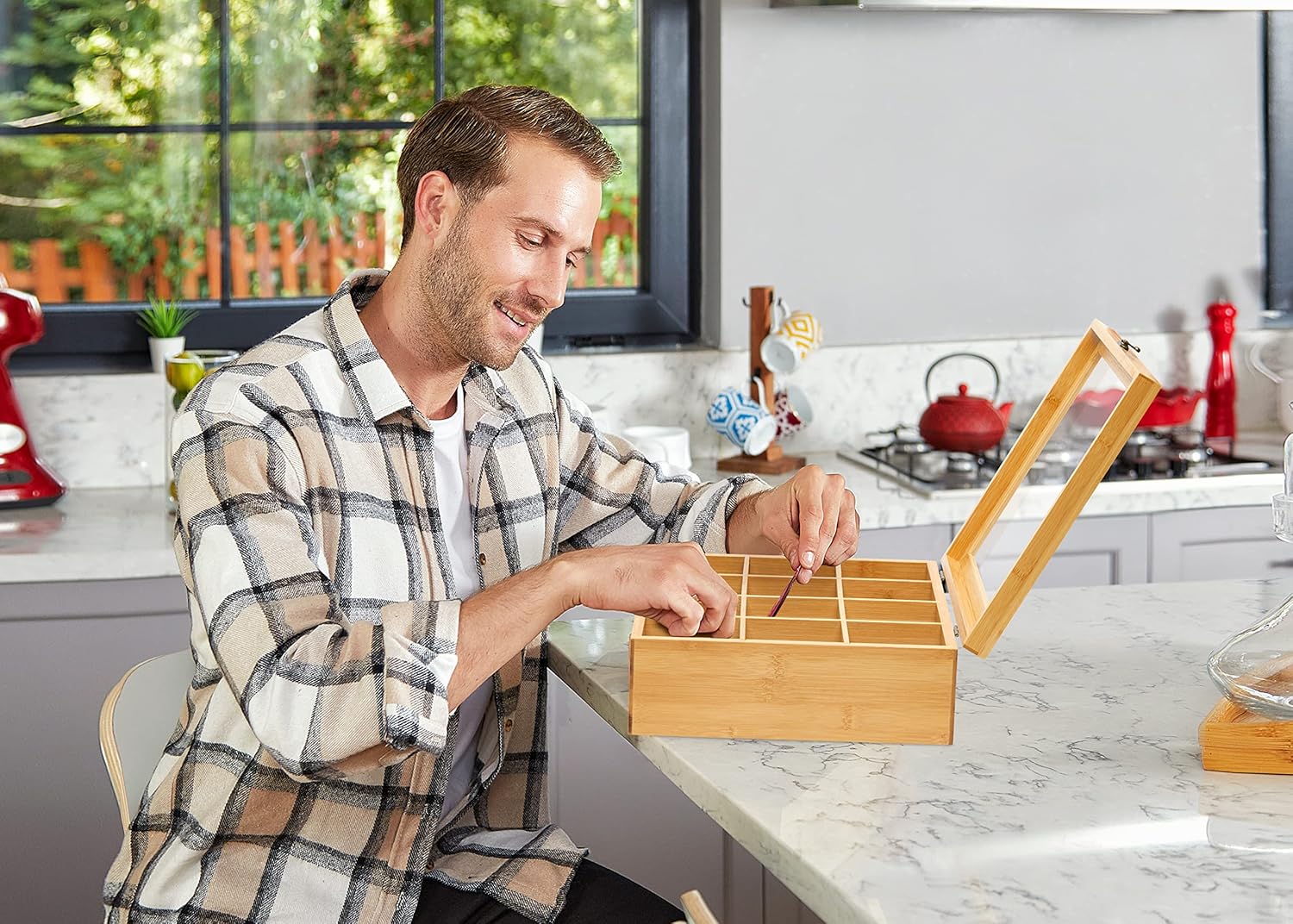 - Attractive Design: This tea box is made of unadulterated bamboo, it's an eco-friendly material and it is the ideal tea box for your home and office.