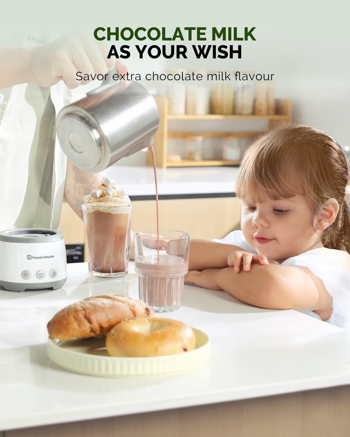 - Chocolate Milk As Your Wish:This versatile milk frother goes beyond coffee, offering a fun and tasty hot chocolate milk option for the whole family. Transform ordinary milk into a delightful treat in moments, perfect for adding a touch of sweetness to their day. Indulge in the joy of creating irresistible chocolate milk at home, making snack time extra special. Elevate your chocolate milk game effortlessly with our convenient and kid-friendly machine.