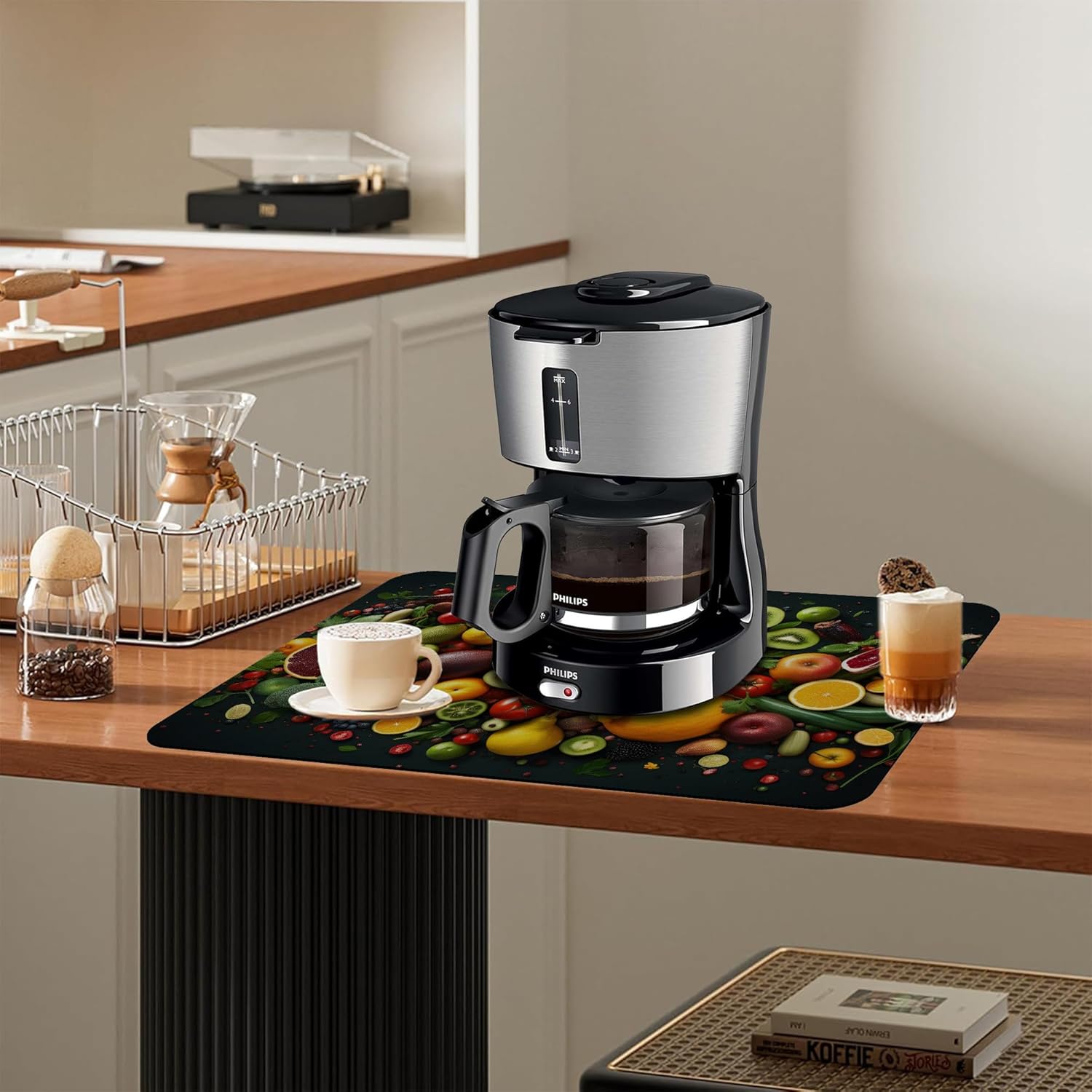 Kitchen Mat Fruits Vegetables Dish Drying Mat 12"x19" Bsorbent Coffee Maker Mat for Sink Dishes or Under Rack Kitchen Counter Accessories Absorbent Hide Stain Rubber Backed Dish Drying Pad