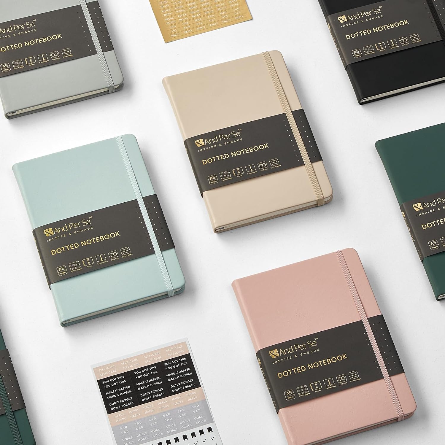 &And Per Se Dotted Journal Notebook, A5 Hardcover Bullet Dotted Journal, 160 Pages 100 gsm Thick Dotted Paper, 3 Sheets of Stickers Included - 5.7'' x 8''(Dark Blue)