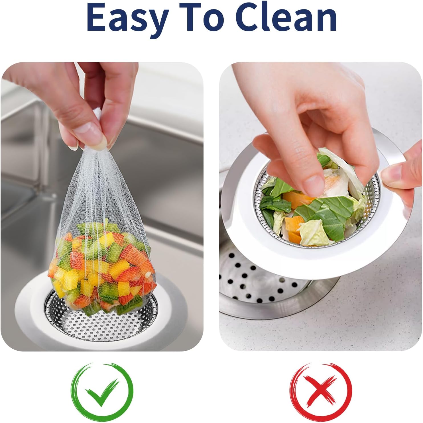 - Easy to Use: Featuring tool-free installation, our sink drain cover can be positioned or removed in seconds. stainless steel sink food catcher Combinate filter bag for easy cleaning of sink debris