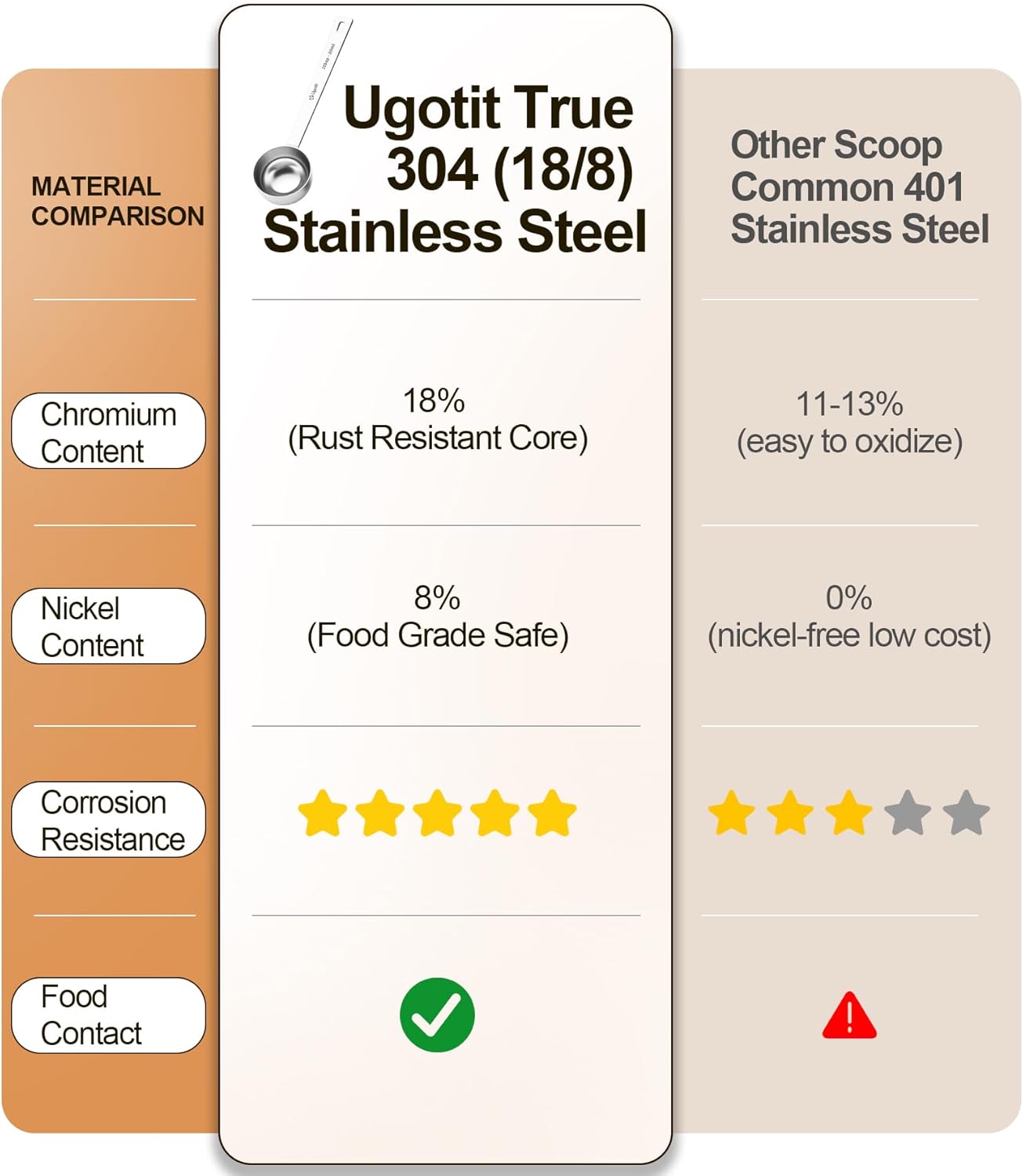 - 【304 Stainless Steel Material】- Constructed from stainless steel, this coffee scoop is sturdy, durable, and resistant to rust. It maintains its polished appearance over time, even with frequent use.