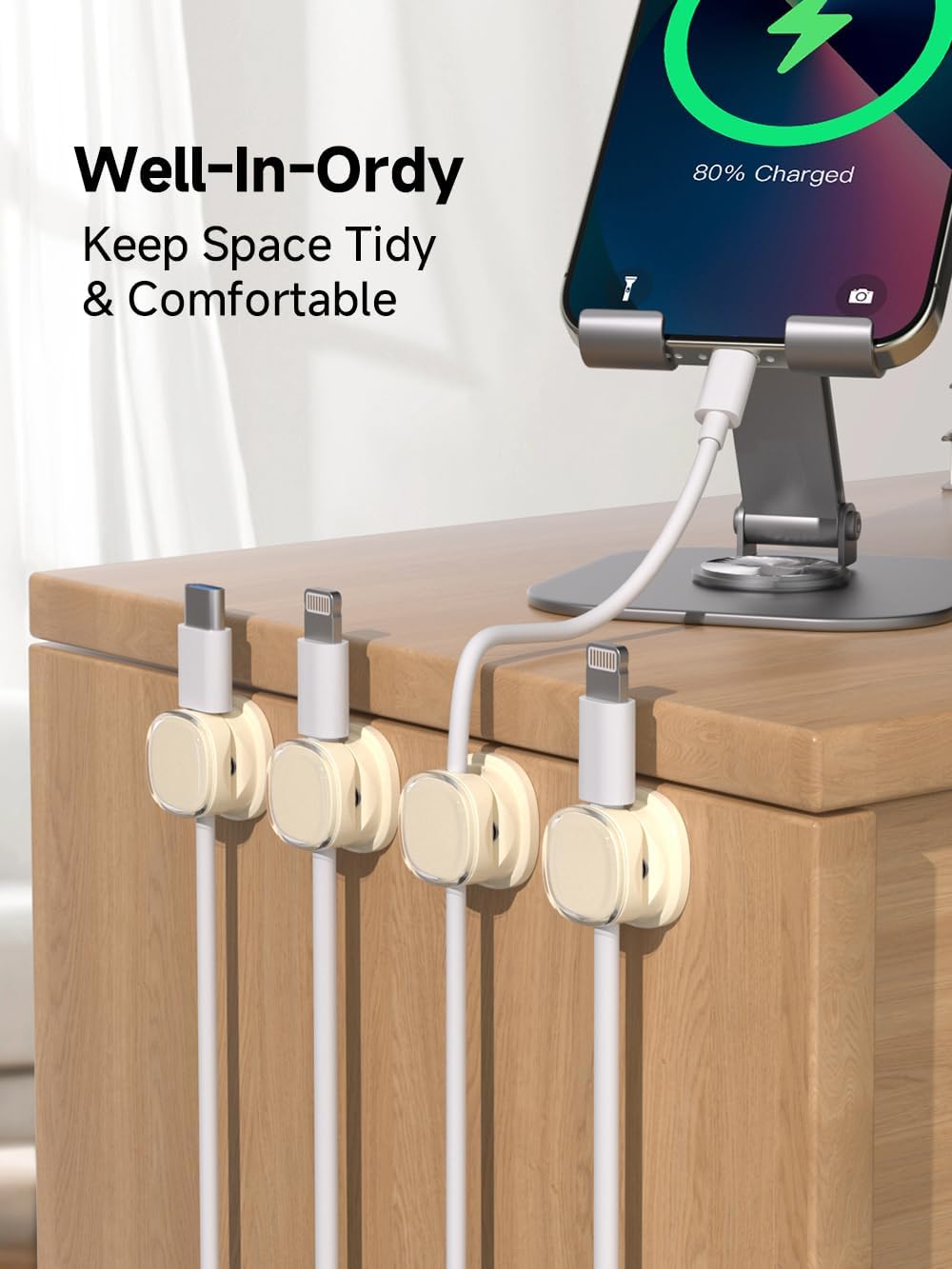 - Hold Most Cords: Diameter of about 0.3 inch (7.5mm) allows to hold most cords, such as Type-C charger cords, lightning cords, HDMI cords, USB cables, PC Notebook power wires, network wires, mouse cords, keyboard cables, headphone cords