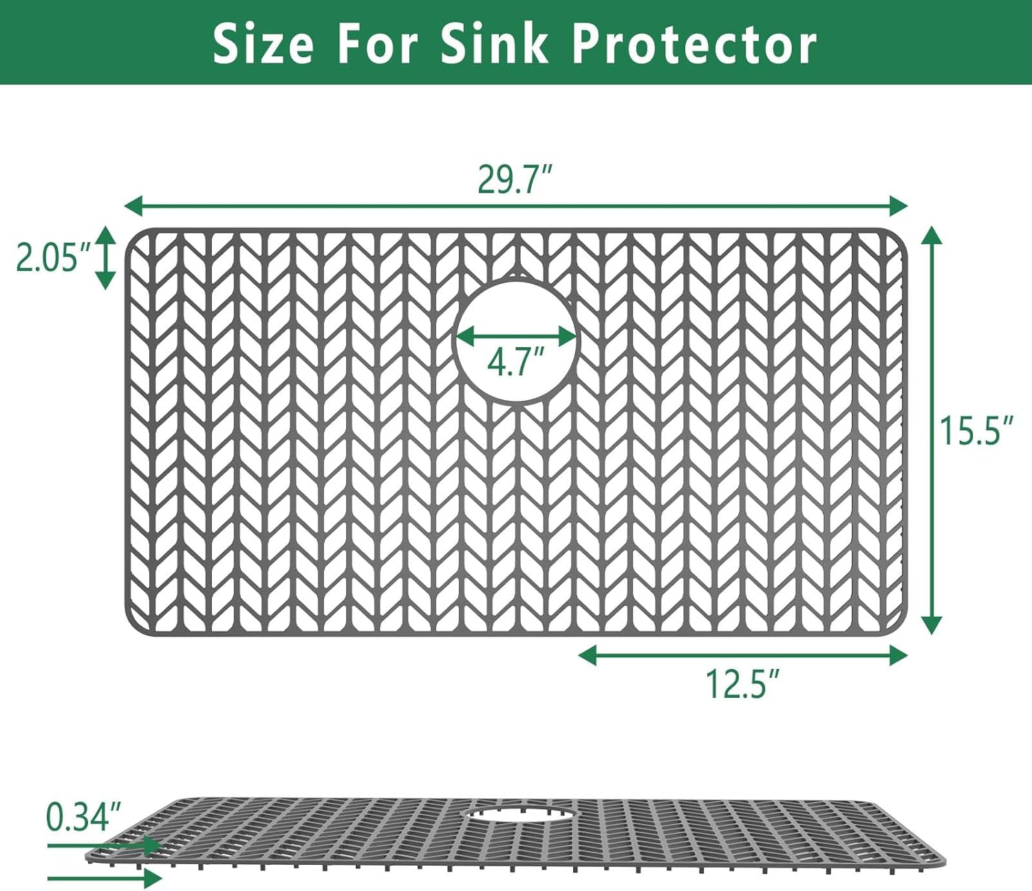 GUUKIN Sink Protectors for Kitchen Mat -30"x 16" Silicone Kitchen Sink Mat Grid for Bottom of Farmhouse Stainless Steel Porcelain with Rear Drain(Grey
